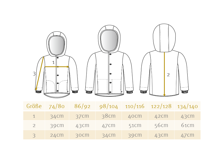 I polsini in maglina evitano il passaggio dell'aria fredda. I grandi bottoni in legno sono facili da utilizzare anche per i più piccoli. Il retro è più lungo per mantenere la schiena al caldo anche se ci si abbassa.