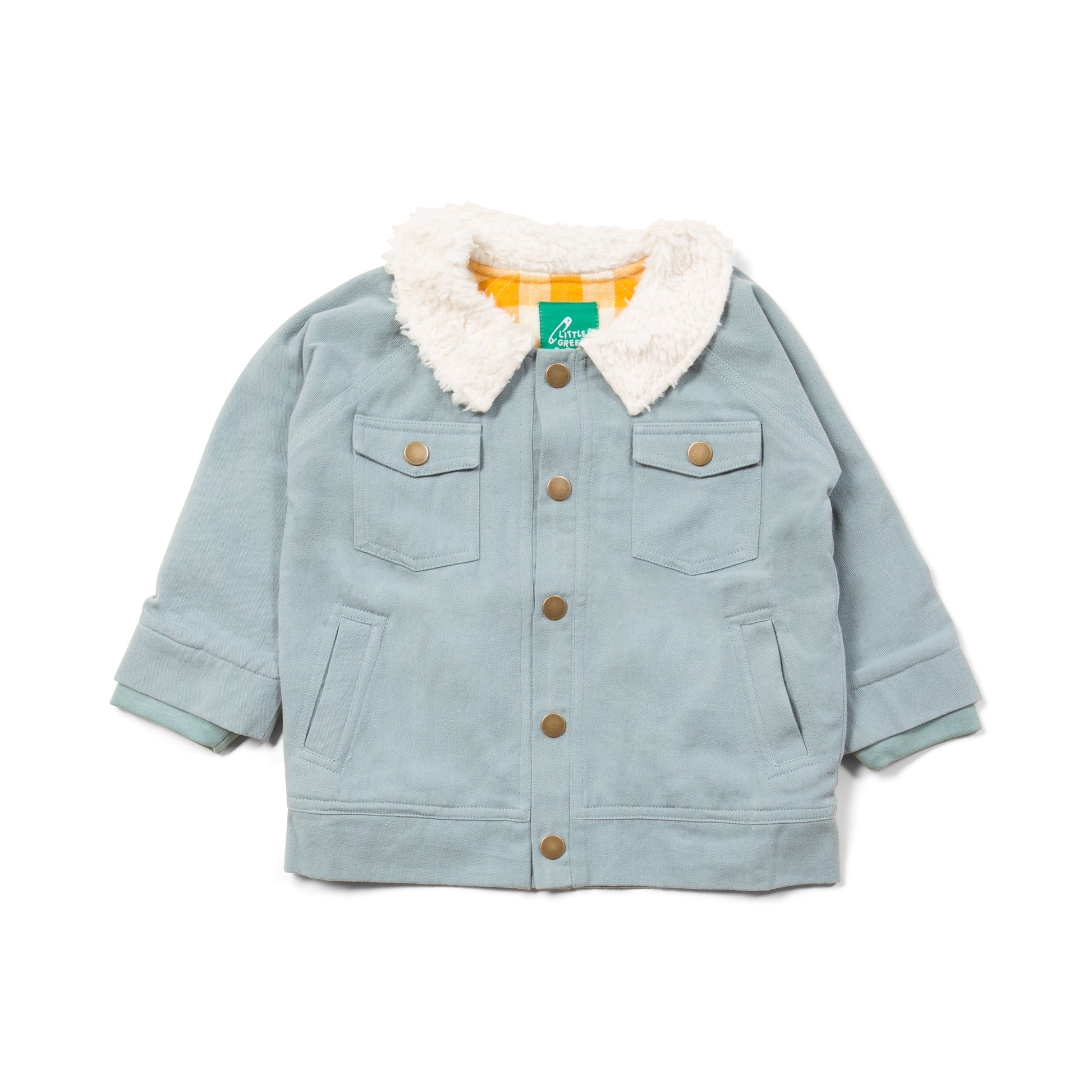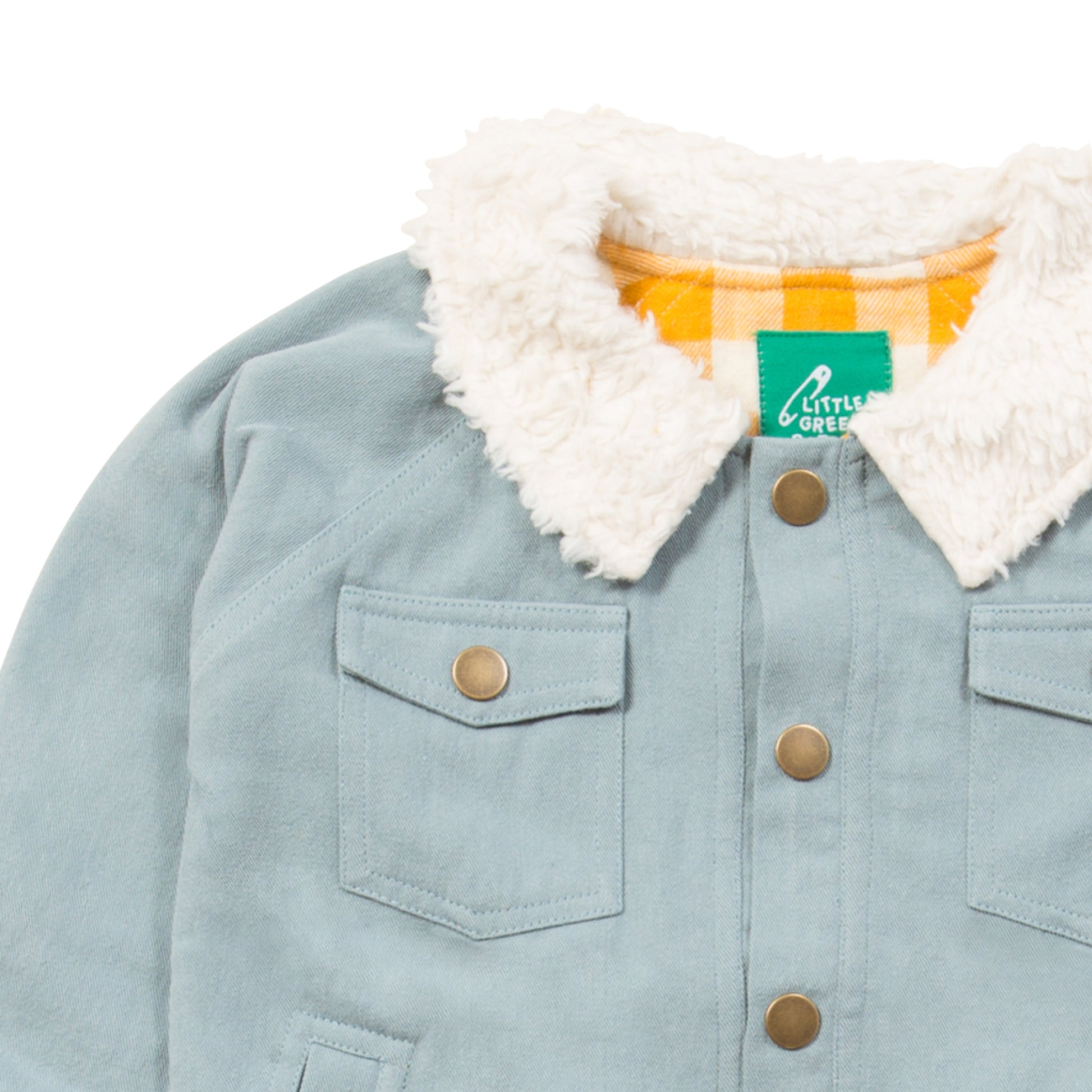 Realizzata in 100% twill di cotone all’esterno in una bellissima tonalità azzurra che ricorda le giacche jeans e foderata all’interno con un’adorabile fantasia a quadri, anche qui in 100% Cotone, è morbida e avvolgente. Il colletto sherpa bianco in contrasto le conferisce un'aria vintage.