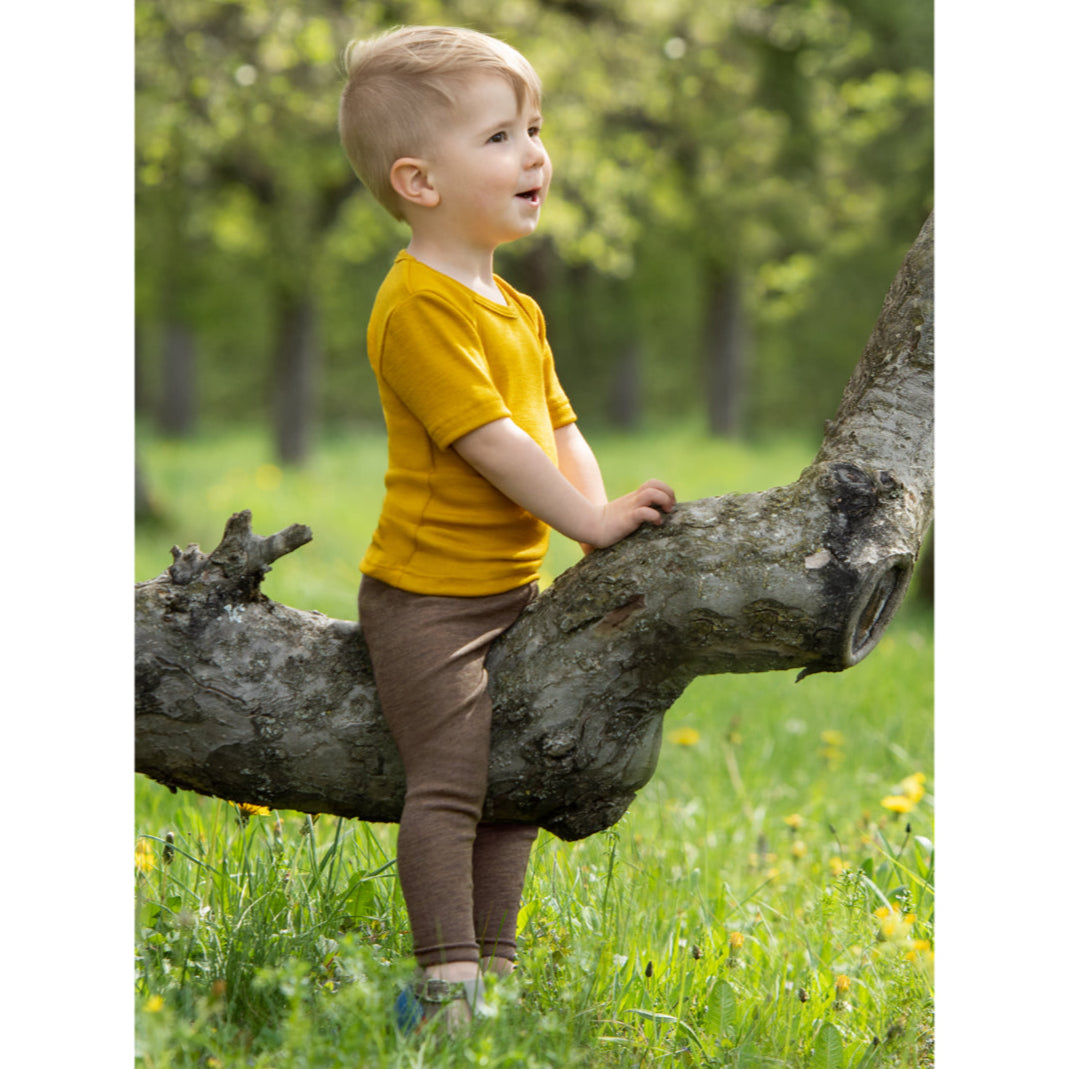 Leggings realizzati in 70% lana merino biologica e 30% seta biologica. Prodotto certificato GOTS e Mulesing Free.