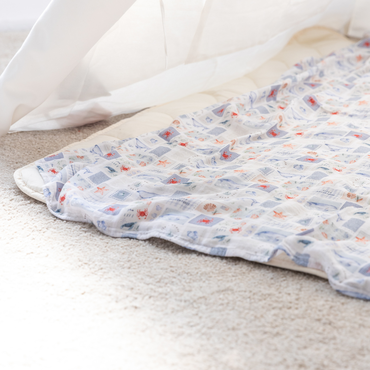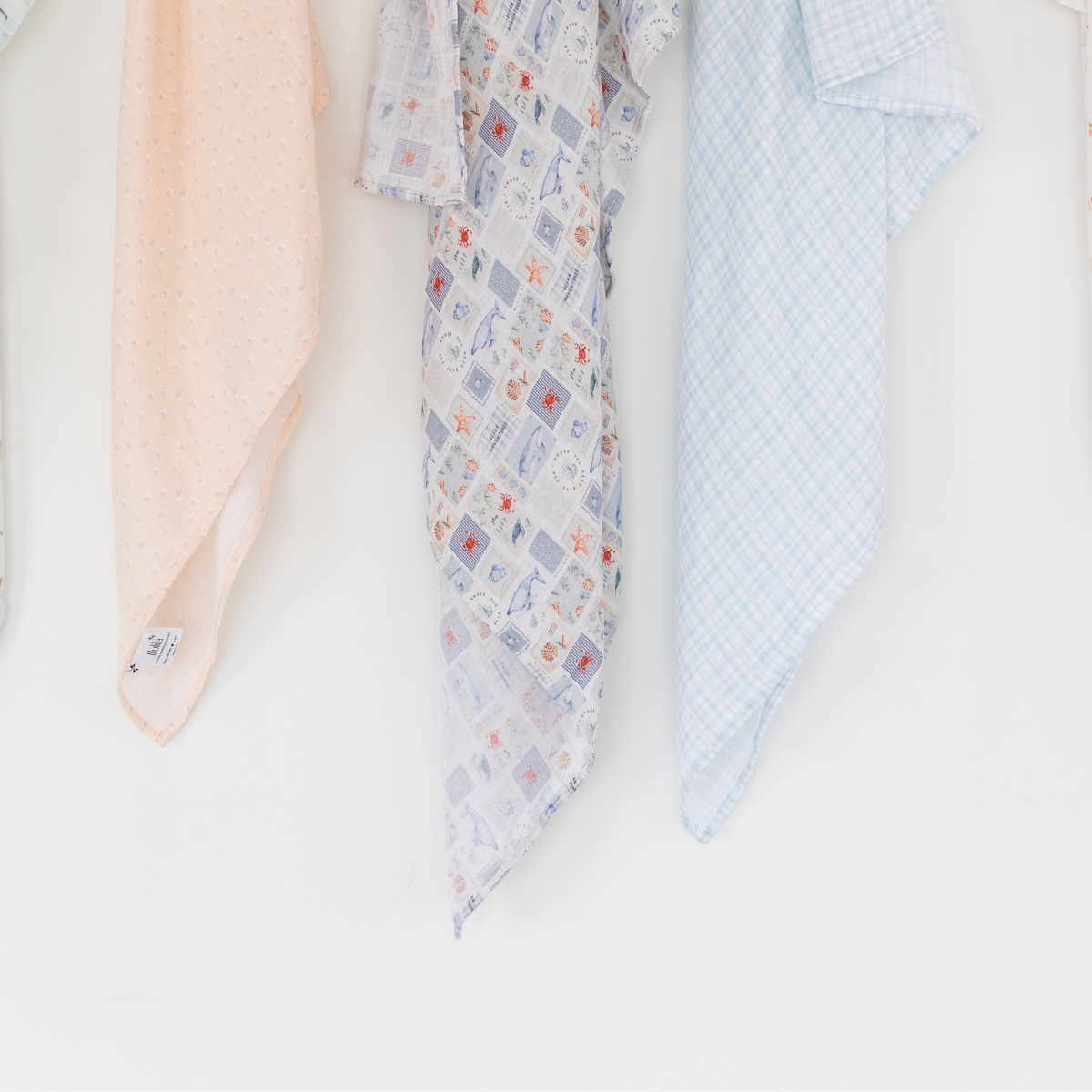 Telo 120x120 cm in Mussola di Bamboo (70%) e Cotone (30%).